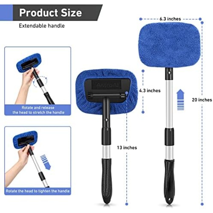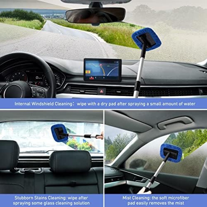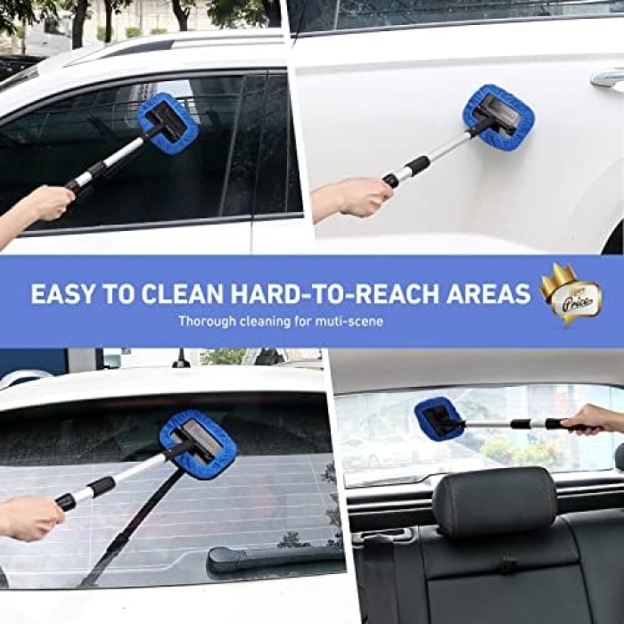 Fast and Easy to Clean Auto Windshield: Clean car window interiors and exteriors without straining. No more hurting your back. With the extra long extension handle and pivoting head getting to those hard-to-reach car window bases is simple