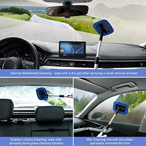 Great Design Car Window Cleaner: Durable and ergonomic handle, easily extend to hard-to-reach window bases. A washable microfiber pad with good water absorbability. Tips: For leaving no streaks or haze, you can put a paper towel between the microfiber cloth and the window, then spray the cleaner and wipe.