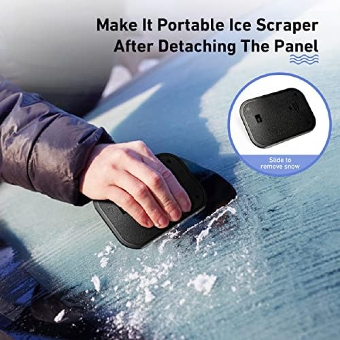 The ice scraper design on the panel could help you deal with the trouble of the ice attached to your vehicle, it is easy to break ice by using the ice removing sawtooth and clean ice by the ice scraper. A safety hammer at the joint of handle and panel shall be a choice to get through an emergency, which is made of high-grade carbon steel