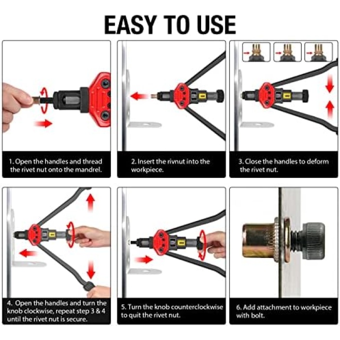 STRONG AND DURABLE – The 16″ rivet nut tool is made from thick carbon steel with heat treated, and black phosphating finishing protects against corrosion. U cross-section of arm is of high reliability to prevent getting bent. With designed structure and tough materiels it is sturdy and durable enough for long life performance.